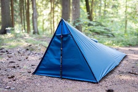 Rozměr rozloženého tarpu: šíře 200cm u vchodu a 100cm u nohou, délka 230cm.