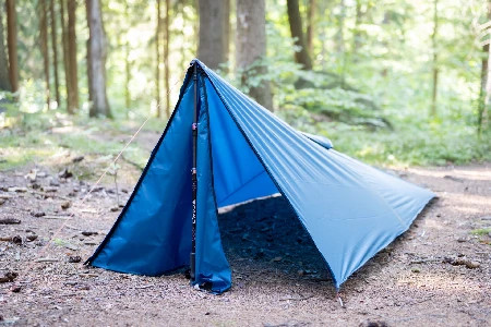 Rozměr rozloženého tarpu: šíře 200cm u vchodu a 100cm u nohou, délka 230cm.